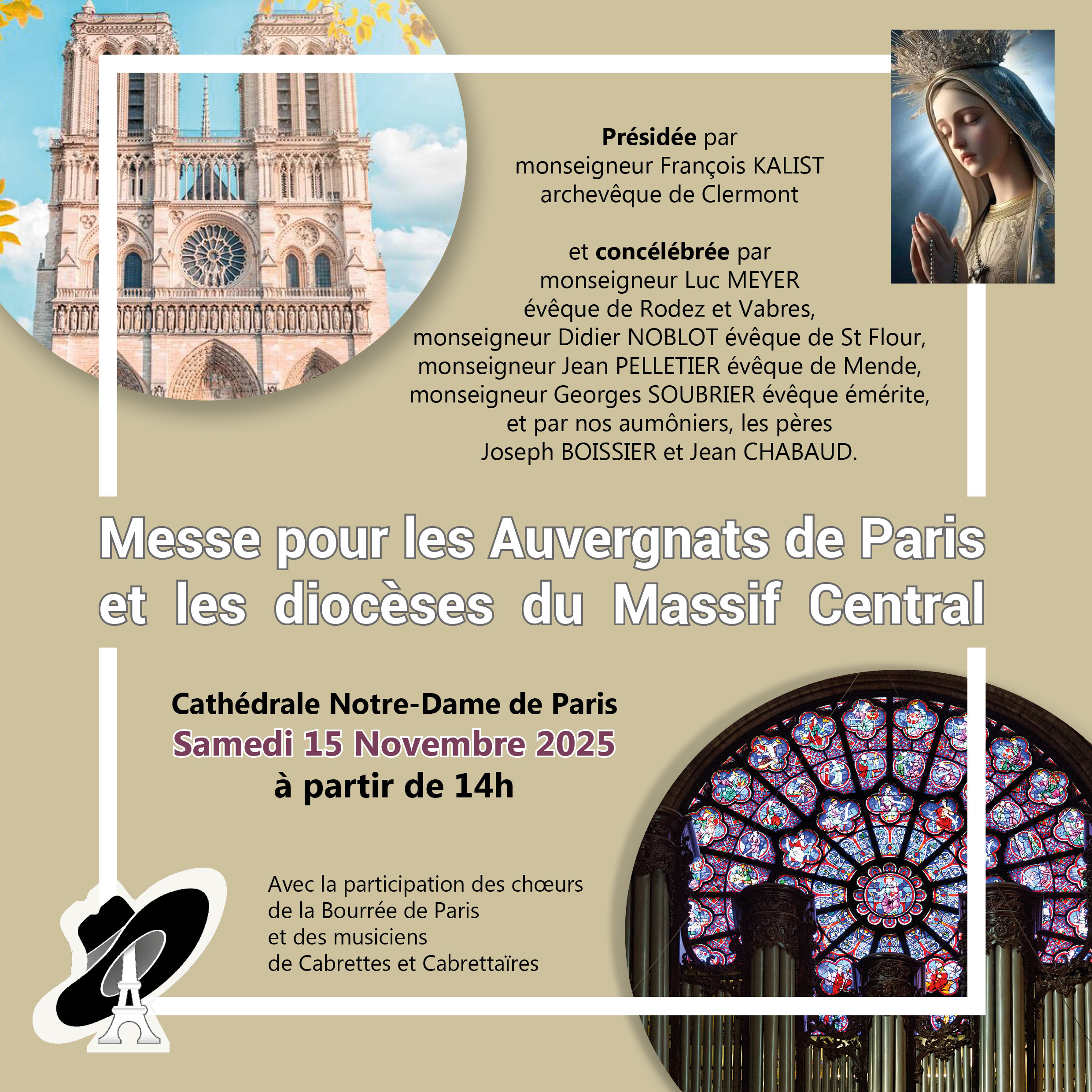 - Samedi 15 novembre à 15h00 : Messe à NOTRE DAME DE PARIS